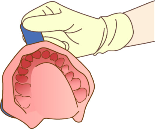 | 型取り時の口の動き | 閉口法(へいこうほう): 口を閉じて取る 開けたり閉めたりして筋肉の動きも転写できる →超精密な型取り | 開口法(かいこうほう): 口を開けたまま →頬と外側の歯ぐきの奥まで型が取れない |