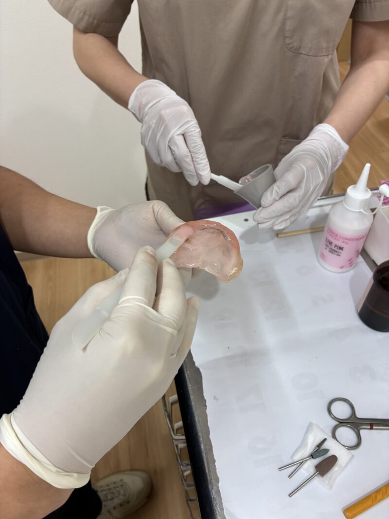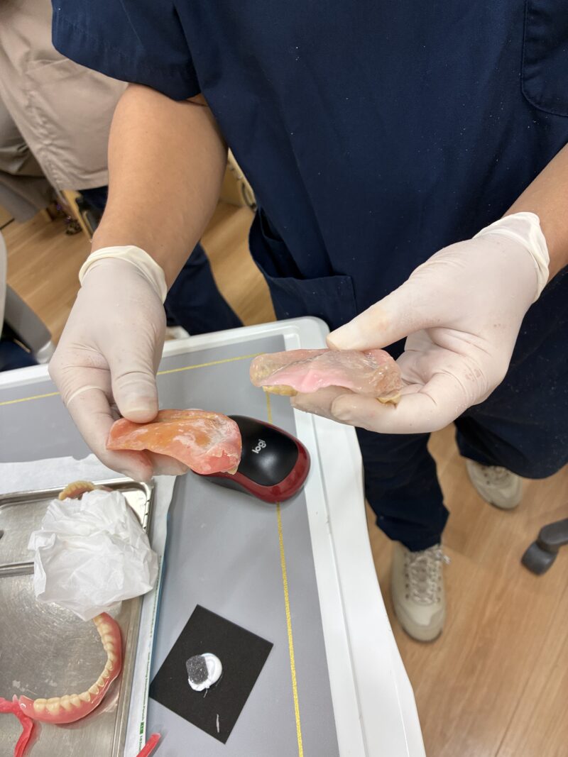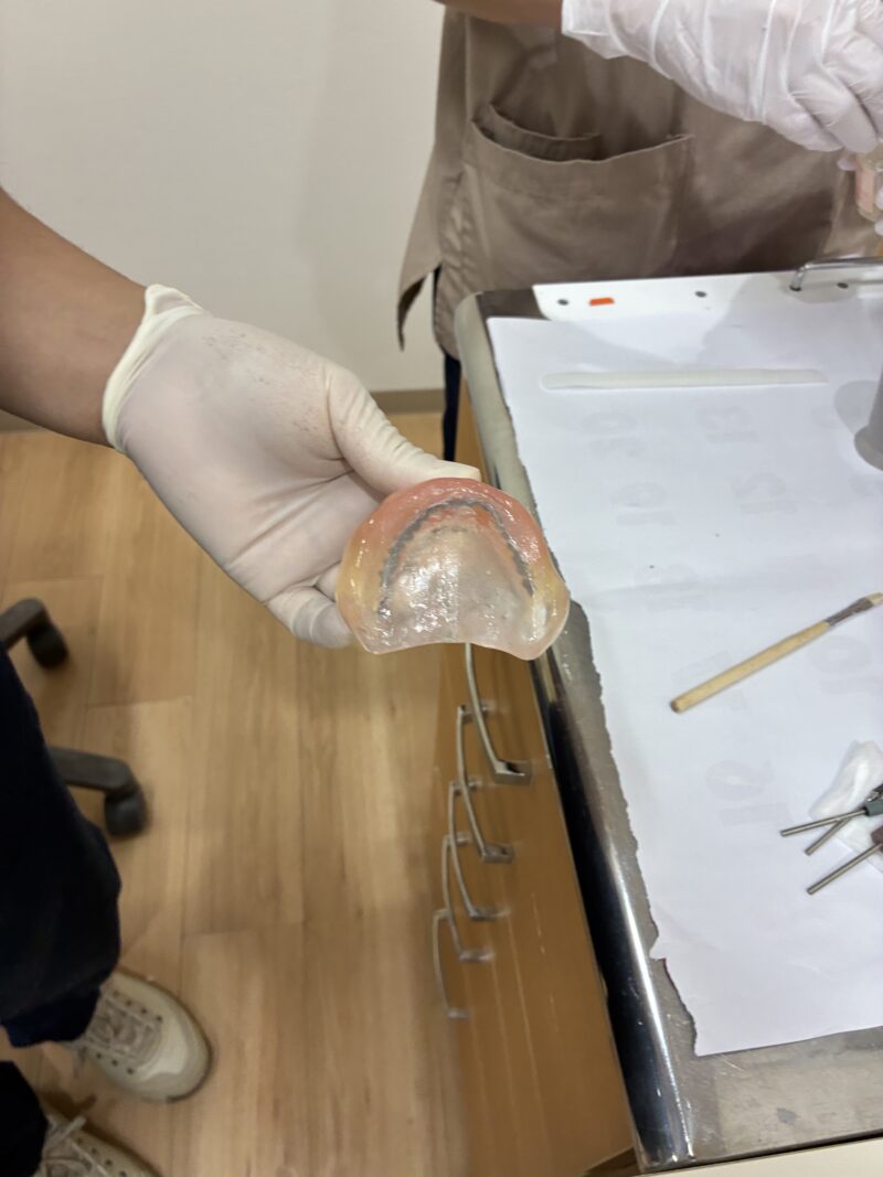 リハビリ入れ歯の「内側の変化」があったので、裏打ち材を足しました。